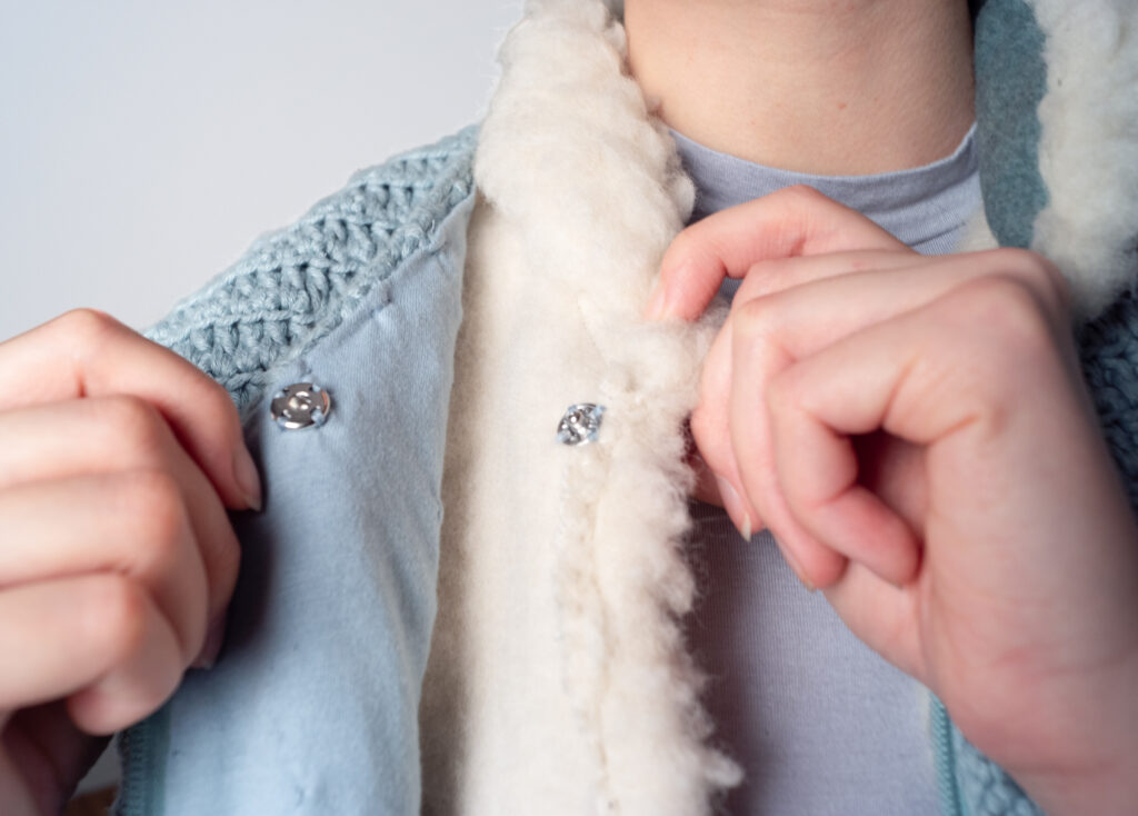 Sowohl im Westen- als auch im Ärmelbereich kann man die Winterteile einfach mit Druckknöpfen einheften. Die Ärmel lassen sich mit leicht versteckten Reißverschlüssen einfach abnehmen.