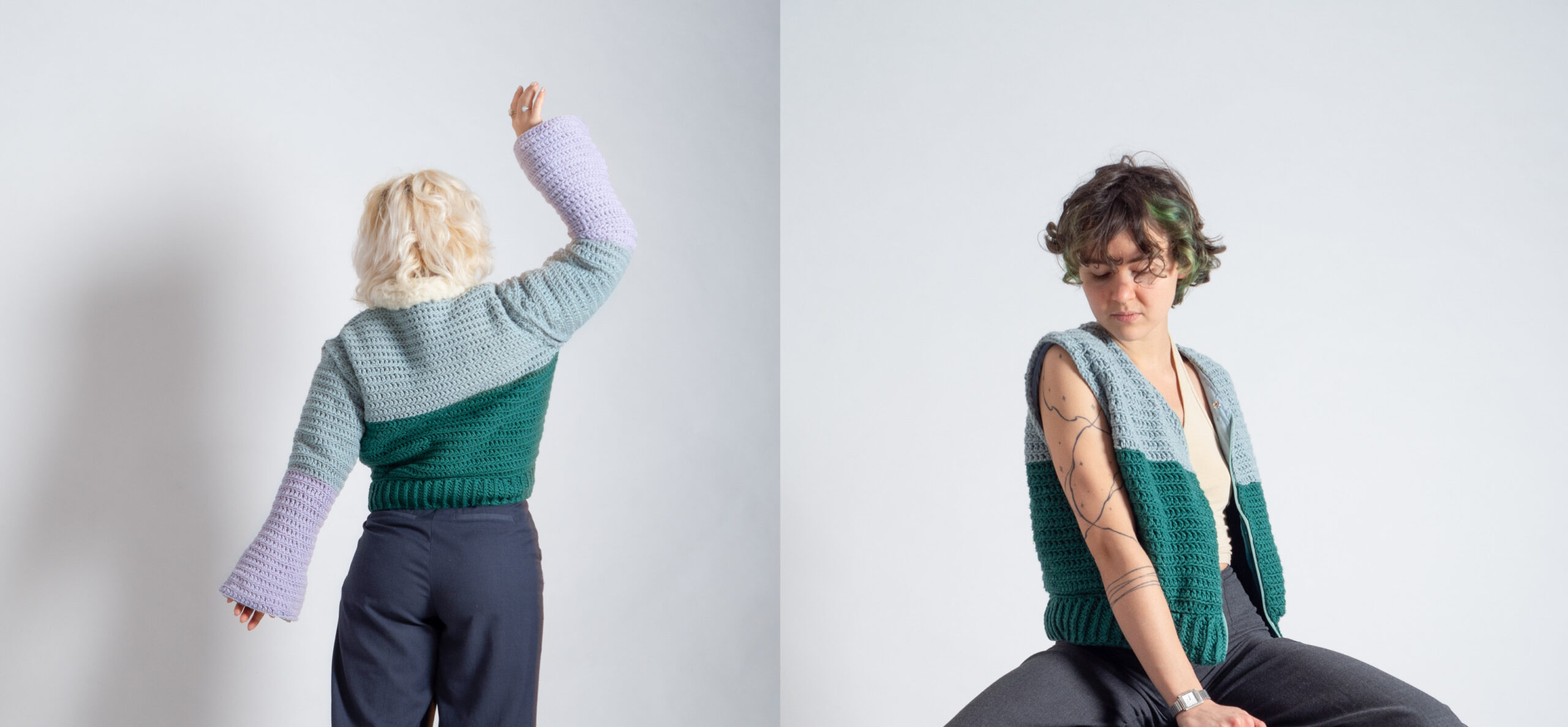 Dennoch wird es stilistisch immer wieder als etwas eingestuft, dass ich als eine konkrete Richtung („Boho“, „Hippie“, „Vintage“) wahrnehme. Nicht, dass ich diese Richtungen nicht auch ästhetisch finde – aber Häkeln kann so viel mehr und genau das wollte ich gerne mit meinem Abschlussprojekt darstellen.